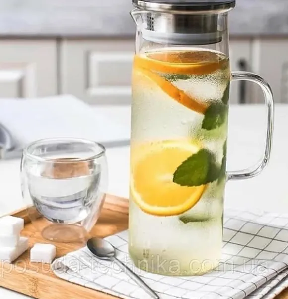 Glaskannan är tillverkad av speciellt värmebeständigt glas som tål höga temperaturer. I en sådan kanna kan du laga kompott direkt på spisen. Dessutom håller kannan sig kall väl och du kan servera kall lemonad. Kannans topp är dekorerad med ett originallock i rostfritt stål, vilket framhäver dess moderna design.