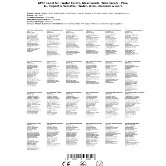 Karaff, vinkaraff, vattenkaraff, glaskaraff – Pisa, 1 l Karaffer och även kannor används ofta för att karaffa vin. Men de är också idealiska för att servera hemgjord lemonad, fruktig fruktjuice, mjölk på frukostbordet, stillastående vatten med och utan is. De mindre karafferna kan till och med användas som mjölkkannor till kaffet. Mått: •Innehåll: 1000 ml•Höjd: 132mm