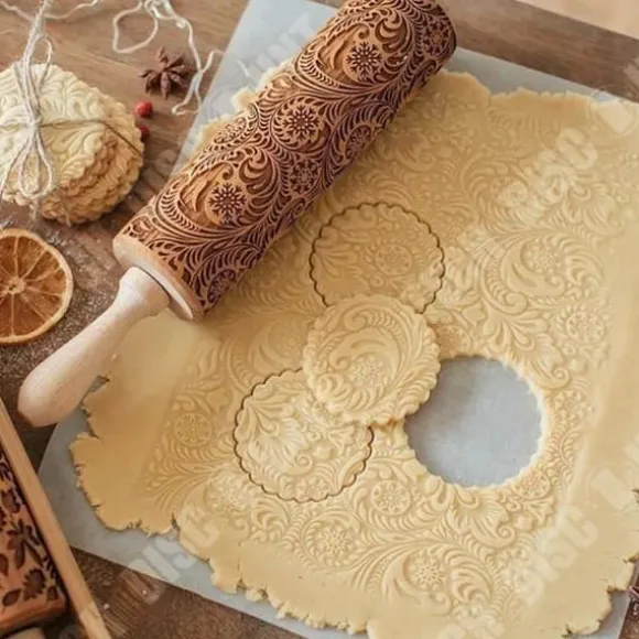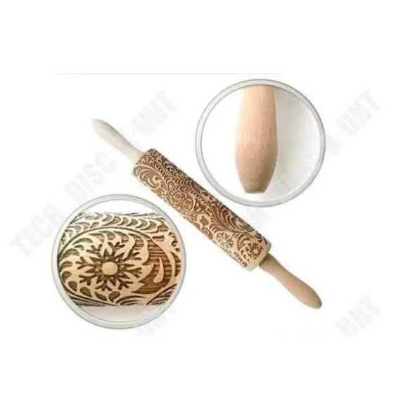 Rullpinn i naturlig tre med snøflakmønster, ideell for dine festlige kulinariske kreasjoner. Målene er 35×5 cm, og den er enkel å rengjøre i oppvaskmaskin. Legg til et dekorativt preg på bakverkene dine med denne rullestangen av høy kvalitet.