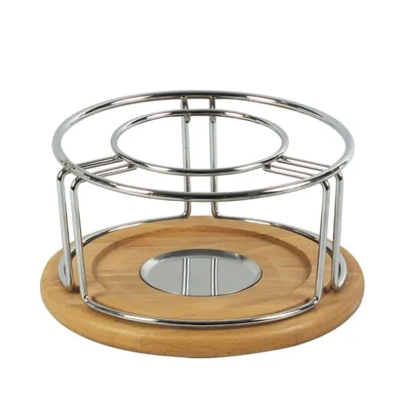 Värmebrännare med ram * setet innehåller 3 element: ** förkromad metallram ** bas i bokträ ** bränslebrännare i rostfritt stål * kan användas som ersättning för Natura fondue-set (61306, 61201) * tillsammans med flamspridaren kan den användas som matvärmare Mått * höjd 11,5 cm * diameter 21,5 cm Material * förkromad metall * bokträ