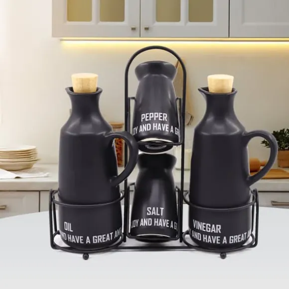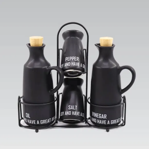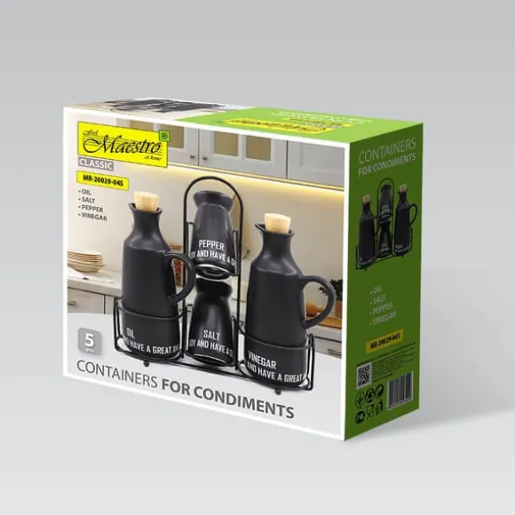 Organisera ditt kök med stil med det praktiskaMAESTRO 5-delars Keramikset. Tillverkat av högkvalitativ keramik kombinerar detta set perfekt estetik med vardaglig komfort. Helheten kompletteras av ett stabilt och moderntmetallställ som kommer att ge karaktär till alla kök.