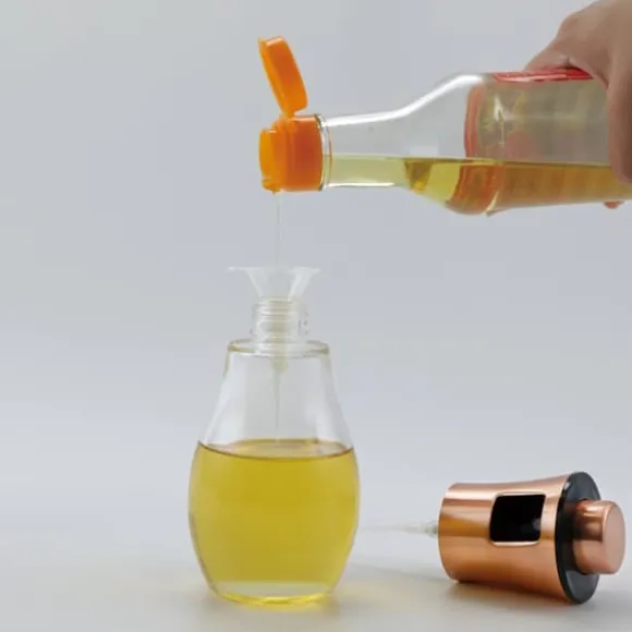 200 ml olje-/vinägersprutan erbjuder dig möjligheten att lägga till olja till din vardagliga matlagning och dressing av sallader. Perfekt effekt varje gång, dispensern tillåter fyllning med olika oljor, olivolja eller andra flytande kryddor, vilket möjliggör ett brett användningsområde i köket. Funktioner: – Vacker design – flaskans moderna och enkla design passar perfekt in i alla kök. – Ergonomisk form. Den specialdesignade flaskformen är lätt att hålla under användning. – Lätt att rengöra. Skölj helt enkelt med milt rengöringsmedel och varmt vatten. Använd endast det skonsamma glasdiskprogrammet i diskmaskinen. Sätt inte locket i diskmaskinen. – Storlek: 17 x 6,6 cm – Kapacitet: 200ML
