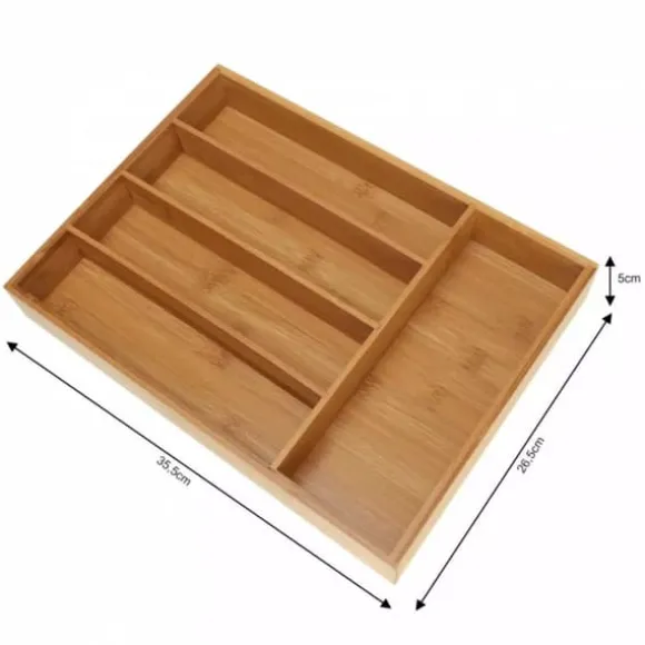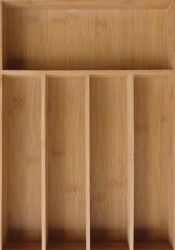 Organizerinsatsen i bambu låter dig organisera bestick och köksredskap i lådor. Beskrivning Tillverkad av: BAMBUTRÄ Mått: 35,5 x 26,5 x 5cm Detaljer: – Lådorganisator för bestick, knivar, kökstillbehör. – Lätt att rengöra och använda. – Perfekt för alla som värdesätter funktionalitet.