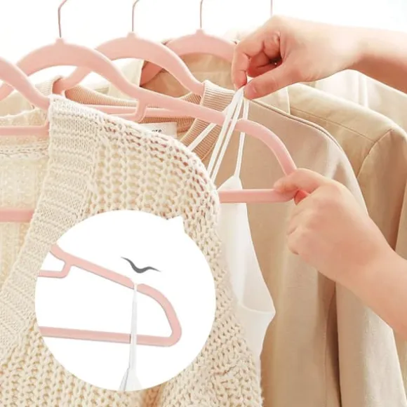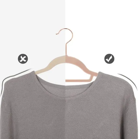 DINA HÄNGARE AKTUELL: Eftersom dina kläder sitter på galgar under större delen av sitt liv, är det nödvändigt att välja bra galgar; dessa sammetsgalgar med böjda kanter är det perfekta valet för att försiktigt hålla dina kläder i toppform.