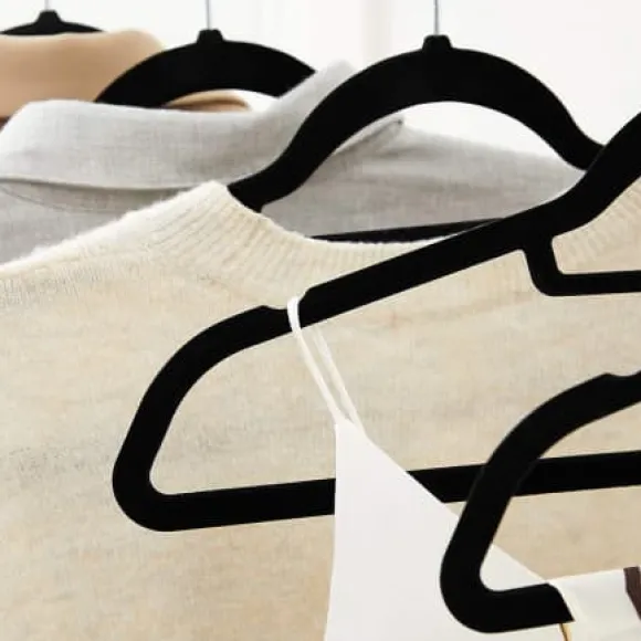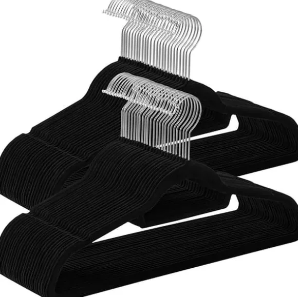– INGA MER GLID AV: Om du är trött på att plocka upp kläder som alltid glider av på golvet, då är denna uppsättning halkfria galgar värt ett försök; den milda, halkfria sammetsytan håller fastare i kläderna än vad du gör, så att ingenting – inte ens en sidenblus – glider av.