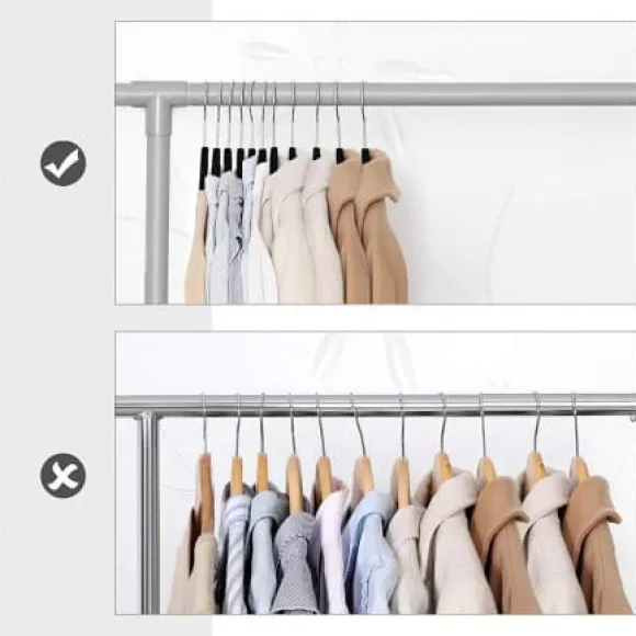 – KAN DIN GARDEROBS BLI STÖRRE? Inte nödvändigtvis, men dina galgar kan åtminstone vara tunnare; med en tjocklek på endast 0,6 cm sparar dessa smala galgar plats i den trånga garderoben så att du kan bjuda in lite nya kläder.