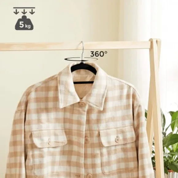 – SLIM PROFIL, JÄTTE KRAFT: Även om de är ganska tunna, är dessa galgar gjorda av robust ABS-plast kraftfulla nog att hålla upp till 5 kg vardera; lämna de där tunga tröjorna och vinterrockarna till dem – de klarar det.