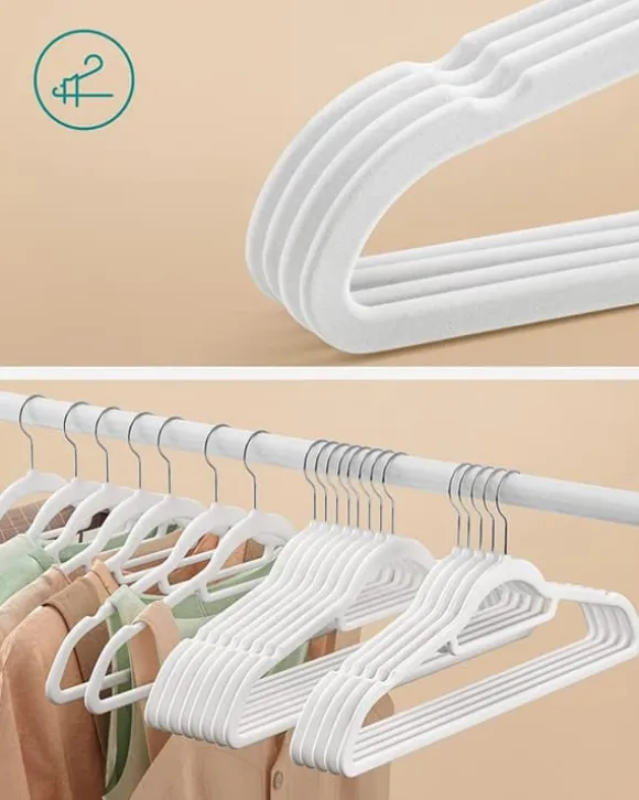- Dubbla ditt garderobsutrymme: Dessa 0,6 cm tjocka smala galgar tar upp halva utrymmet jämfört med rörformade plastgalgar, och förvarar dubbelt så mycket kläder på samma utrymme och är den perfekta lösningen för små garderober.