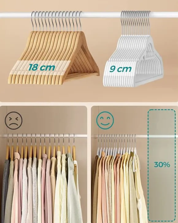 - Kvalitet byggd: 45 cm i längd ger fullängdsstöd till axlarna på kläder medan 78 g i vikt är robust för långvarig användning utan att gå sönder.