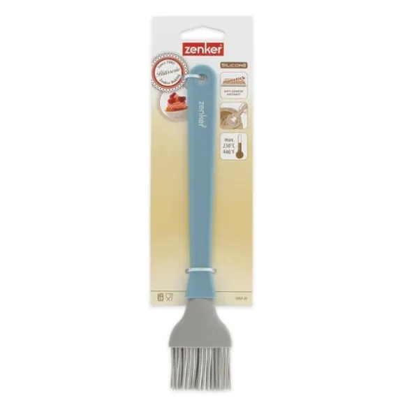 BESKRIVNING: Grå och blå silikonbakpensel 25 cm lång för att pensla bakverk med äggula eller glasyr. LILLA +: Med vår kökspensel kan du olja dina formar och kärl. Denna pensel är också användbar i köket för att pensla dina köttstycken med sås. KOMPOSITION: Plast, silikon. DIMENSIONER: 25 x 5 cm. INNEHÅLL: 1 färgad silikonbakpensel 25 cm. Bakpenseln är ett mycket användbart redskap för att olja en tårtform, för att täcka ett bakverk med socker, för att pensla en croissant med ägg eller mjölk, etc. Med denna bakpensel kan du skapa vackra glasyrer, överraskande bakverk och mycket mer. Zenker är ett märke som tillhör Fackelmann Brands gruppen och erbjuder ett brett utbud av bakredskap och tårtor. När det kommer till bakredskap slår Zenker hårt genom att erbjuda både förberedelseverktyg och dekoration för erfarna bagare. När det gäller tårtformar är det ett banbrytande märke som erbjuder innovationer såsom silikon- och fiberglasformar som inte behöver fett och ger otroliga bakresultat. Zenker har därför ett brett utbud av tillbehör och redskap som hjälper dig i dina vardagsrecept men också för exceptionella evenemang som fester, födelsedagar, bröllop, osv.