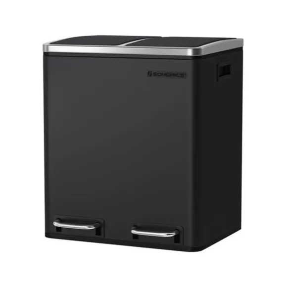 Återvinning kan också vara enkelt: Med den här pedalbehållaren med 2 separata fack kan du enkelt sortera dina sopor, t.ex. restavfall och organiskt avfall. Allt du behöver göra är att trycka på pedalen och slänga avfallet i det inre facket. Du behöver inte ens röra vid soptunnan med handen, vilket är bra för hygienen. En ”valp- och barnsäker” soptunna: Rumsar din hund ofta i papperskorgen? Sträcker sig dina barn ofta in i den öppna soptunnan? Om så är fallet vill du sätta stopp för det. Det är här vår pedalbehållare kommer in i bilden! Locket öppnas bara när du trampar på pedalen.Produktdetaljer:Färg: SvartMaterial: Stål (yttre soptunna), PP-plast (inre soptunna), ABS-plast (lock)Storlek: 41 x 36 x (47-73,5) cm (L x B x H)Storlek inre soptunna: 26,5 x 18 x 40,5 cm (L x B x H)Storlek pedal: 11,5 x 4 cm (L x B); Diameter: 1 cmVikt: 5,1 kgLeveransomfattning:1 x soptunnaSONGMICS Anmärkningar:För att rengöra produkten, torka av den med en mjuk, fuktig trasa och använd milda rengöringsmedel vid behov.placera produkten på ett plant golv och stäng inte locket på soptunnan helt för hand, eftersom det kan stängas automatiskt.