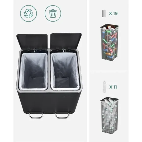 Vad du får med: En modern soptunna med 2 x 15 liters fack, så att du enkelt kan sortera soporna för återvinning och få ett rent hem