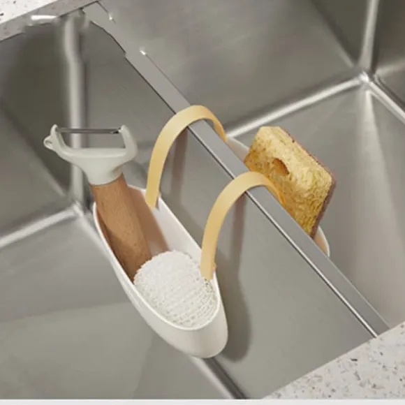 1, MED AVLOPPSHÅL: Diskbänksavlopp hängande hållare med avloppshål i botten, ihålig design, lätt att ventilera och dränera, håll den torr och hygienisk.
