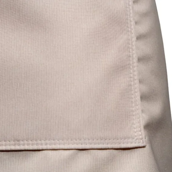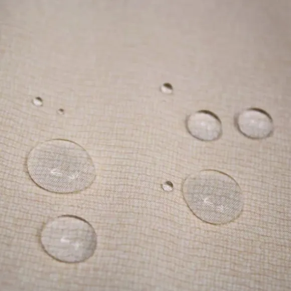 Tyg: 100 % av polyestertyget: 100 % avstrykande vatten. ”vatten, förhindrar snabb blötläggning. På ett av bilderna visar vi hur vatten samlas till droppar på tygets yta, som enkelt kan tas bort med en pappershandduk innan de blötlägger förklädet.