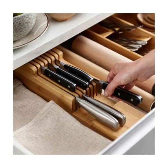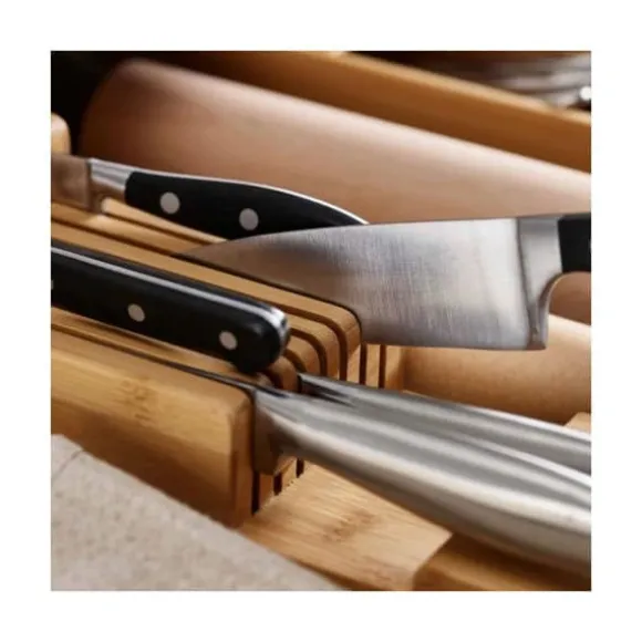 Förvara upp till 9 köksknivar i din låda utan att ta för mycket plats med denna knivställning med 2 nivåer – OnRangeTout, förvaringsspecialisten.