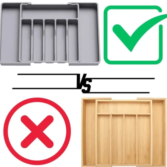 - Fukttålighet – Till skillnad från bambu-organisatorer, som kan absorbera fukt och svälla, är vår arrangör tillverkad av hållbar, vattentålig plast. Detta gör den perfekt för fuktbenägna områden som kök eller badrum, utan att förlora sin funktionalitet eller estetik.