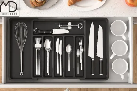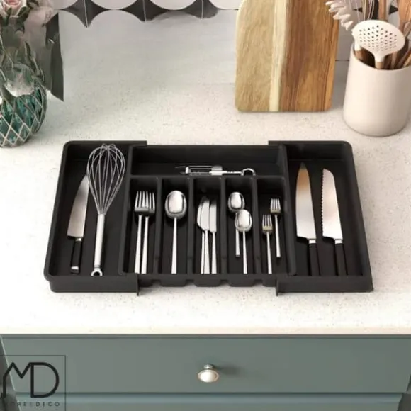 ⚫️ Upptäck svart, justerbar besticklåda som kommer att förändra hur du förvarar inte bara bestick, utan även många andra föremål.