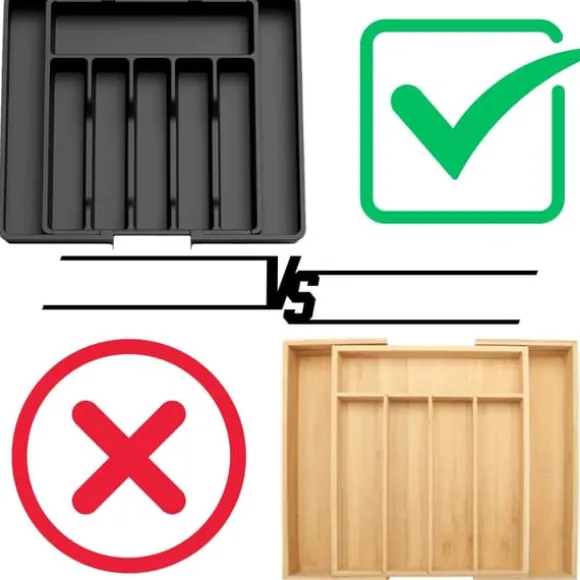 - Fukttålighet – Till skillnad från bambu-organisatorer, som kan absorbera fukt och svälla, är vår arrangör tillverkad av hållbar, vattentålig plast. Detta gör den perfekt för fuktbenägna områden som kök eller badrum, utan att förlora sin funktionalitet eller estetik.
