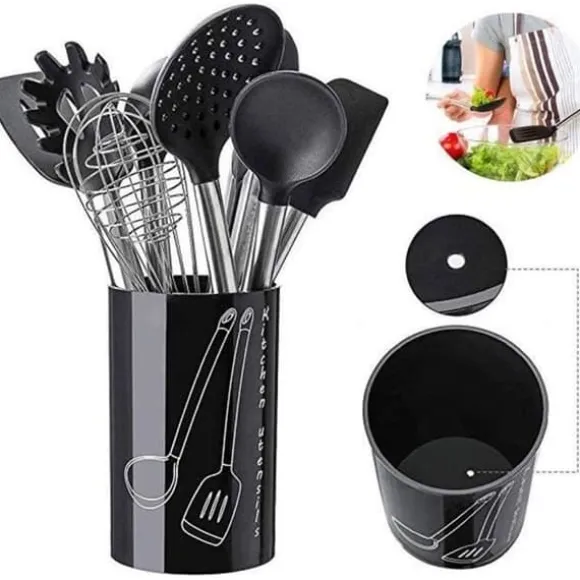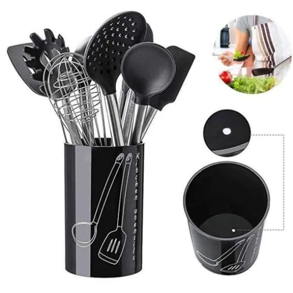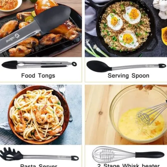 Köksredskap i 9 delar – Möt alla köksredskap du behöver för din dagliga matlagning, designad för hemkockar och professionella kockar. Inkluderar: 1*spaghettisked, 1*visp, 1*sked