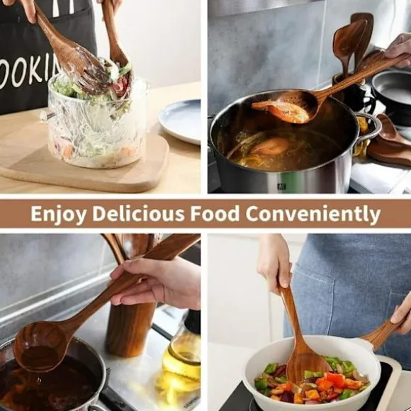 Ge ditt kök en naturlig och miljövänlig touch med detta 6-delade set av köksredskap i bambu. Setet innehåller alla nödvändiga verktyg för din matlagning.