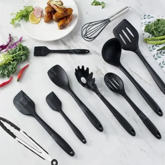 Upptäck TD® svart silikon köksredskapset. Detta 11-delade set är utformat för att vara non-stick, vilket gör matlagning och rengöring enklare. Perfekt för alla dina kulinariska behov, förenar det kvalitet och praktisk användning.