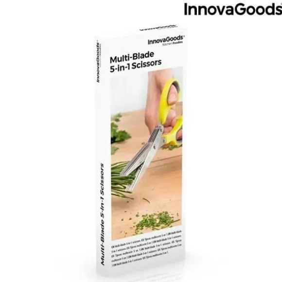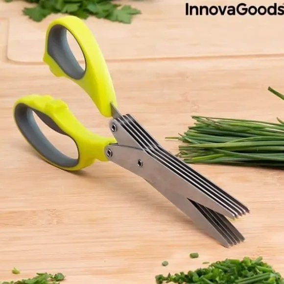 Gör någon som älskar att laga mat glad genom att ge dem denna originalgåva. Detta är ett praktiskt köksredskap för att skära mat. Denna kökssax har 5 blad för snabbt och effektivt arbete. – Tillverkad av rostfritt stål, ABS och TPR – Ergonomisk och funktionell design – 5 skärblad – Inkluderar liten rengöringsborste – Ca. : 21 cm Sax