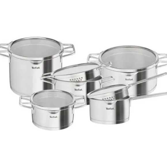 Upptäck TEFAL:s Nordica kökspaket, bestående av 10 delar i rostfritt stål. Kastruller från 16 till 24 cm med glaslock och integrerat sil. Robust design, induktions- och diskmaskinsvänlig, perfekt för effektiv och praktisk matlagning i vardagen.