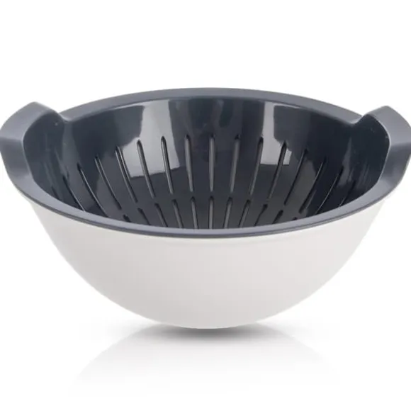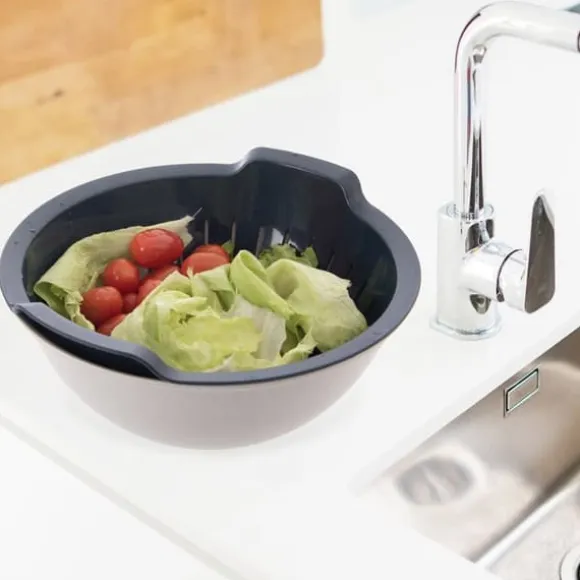 Ett praktiskt 2-i-1 skål- och silset, perfekt för att skölja, sila och servera frukt, grönsaker eller pasta. Bekväm förvaring – silen får plats i skålen.