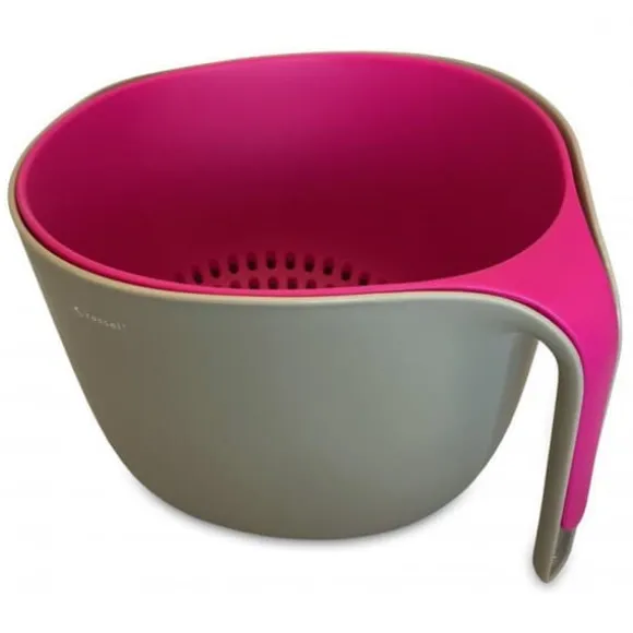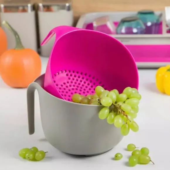 4-litersskålen kan användas för att blanda deg och sallader och servera dem till bordet. Ett durkslag hjälper dig att enkelt sila tvättad frukt, grönsaker, sallad och andra ingredienser. Disken är tillverkad av högkvalitativt, sprickbeständigt och hälsosäkert material. En intressant färgkombination kommer att dekorera vilket kök som helst.
