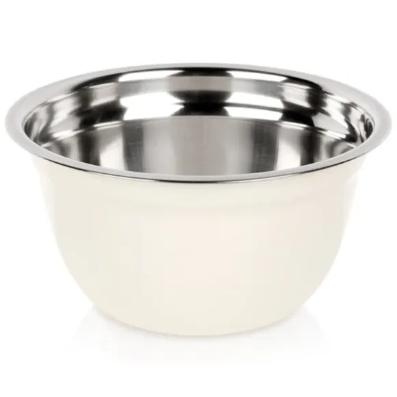 Denna skål i rostfritt stål är mångsidig i köket. Utsidan är vitmålad, vilket ger den ett slående utseende.