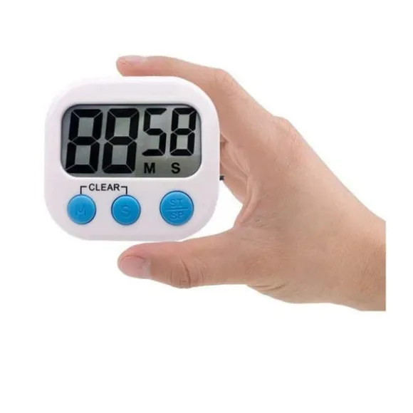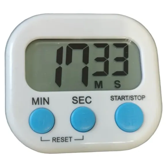 Trött på att kisa mot små displayer? Vår vita digitala timer löser det problemet. Den har en avskalad design och en stor, tydlig skärm som gör att du ser exakt hur lång tid som återstår, även när du har händerna fulla eller står en bit bort.