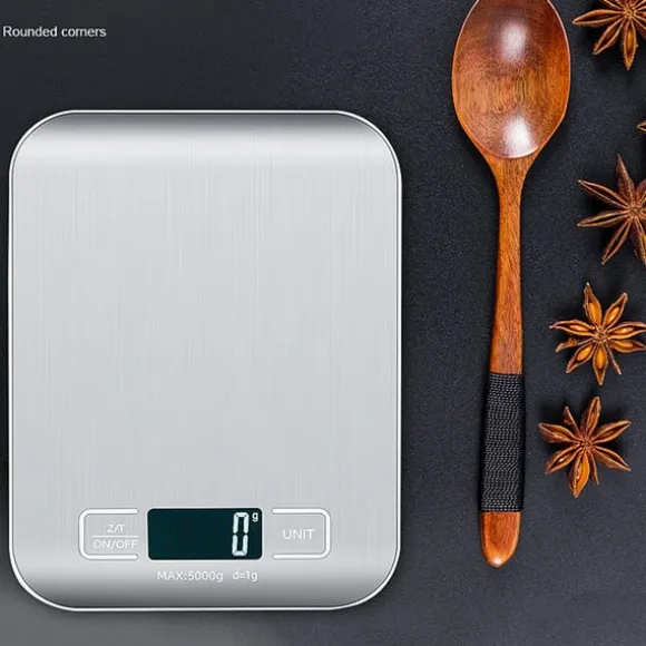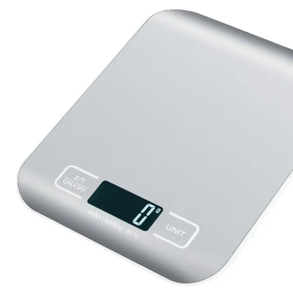 Elegant Design: köksvåg har en modern och elegant design som kommer att komplettera alla köksinredningar. Den metallvita finishen och plattformen i rostfritt stål ger den ett sofistikerat utseende, medan den smala profilen gör den enkel att förvara när den inte används. ABS-plastkonstruktionen säkerställer hållbarhet och enkel rengöring. Dess kompakta storlek (18 cm x 14 cm x 1,71 cm) tar inte upp för mycket bänkyta, vilket gör den idealisk för mindre kök eller de som föredrar en minimalistisk estetik.