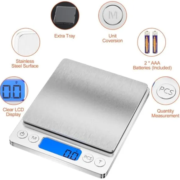Köksvåg 500g kapacitet – 0.01g precision med 6 måttenheter
