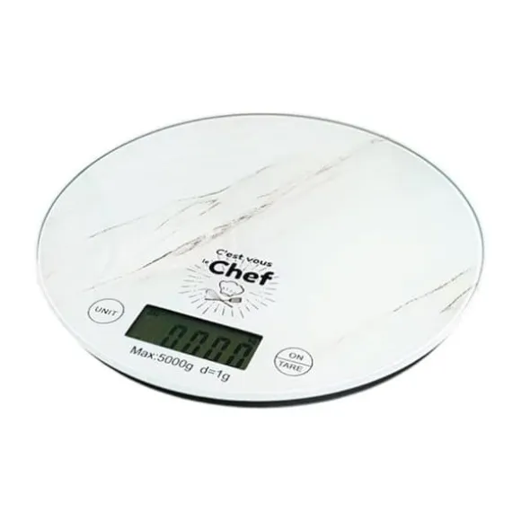 Upptäck den rund digital köksvågen, idealisk för exakta mätningar upp till 5 kg. Med sin klara LCD-skärm och precision på 1 g är den perfekt för alla matlagningsentusiaster. Dess kompakta och eleganta design i marmor-effekt gör förvaring enkelt samtidigt som den ger ett modernt inslag i ditt kök.
