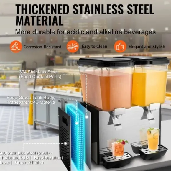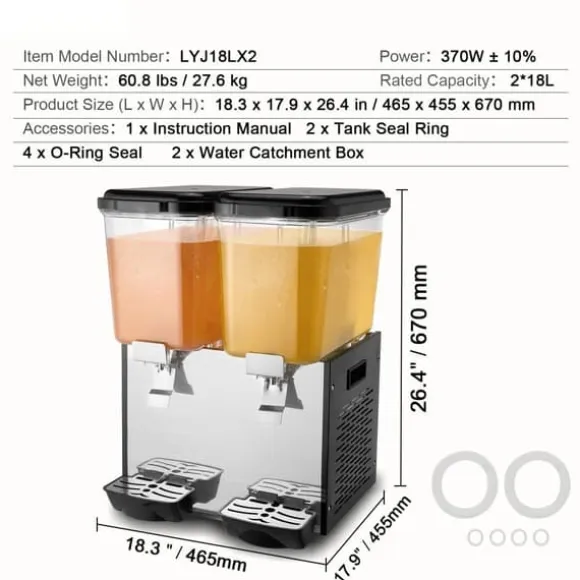 Denna kommersiella dryckesautomat har en imponerande kapacitet på 18 liter och är perfekt för att servera stora mängder drycker. Med en pålitlig prestanda och förmåga att hantera hög kundtrafik, garanterar den en konsekvent kall dryckupplevelse. Dryckesautomaten är utrustad med en gummitätningsring för att förhindra läckage av drycker.