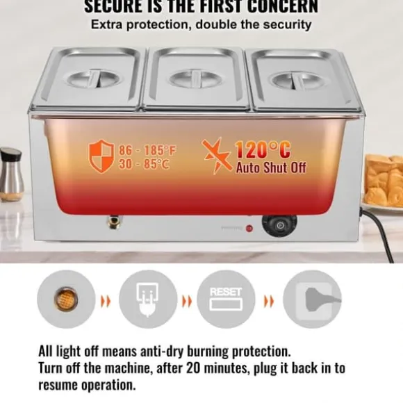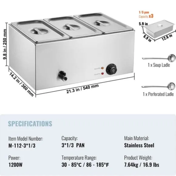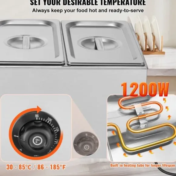 Denna imponerande matvärmare med kokkärl är designad för snabb uppvärmning och långvarig värme. Med ett kraftfullt 1200-watts värmerör i rostfritt stål behåller den din mat varm och läcker. Justera enkelt temperaturen mellan 86 – 185 ℉ / 30 – 85 ℃ med den inbyggda temperaturregulatorn.