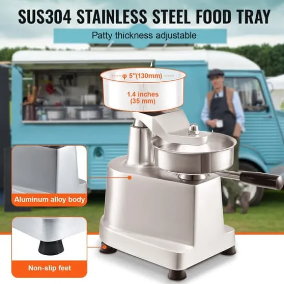 Mångsidig användning: Med en vikt på endast 2,45 kg och sin kompakta storlek är hamburgarpressen perfekt för användning i kiosker, skolköken, hotell, hamburgerrestauranger och mycket mer.