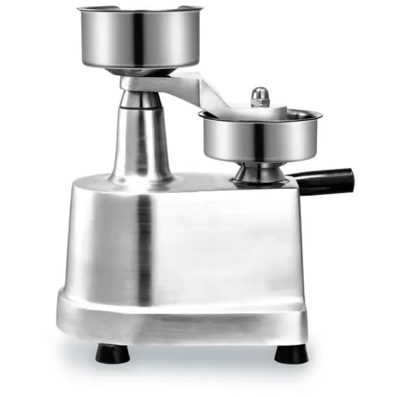 Lätt att rengöra: Hamburgarpressen är tillverkad av ett hölje i anodiserad aluminiumgjutning med rostfria kugghjul och en livsmedelstablett av rostfritt stål SUS304, vilket möjliggör en grundlig rengöring.