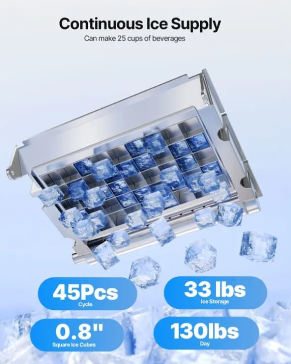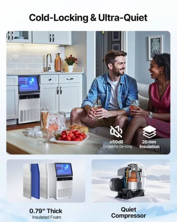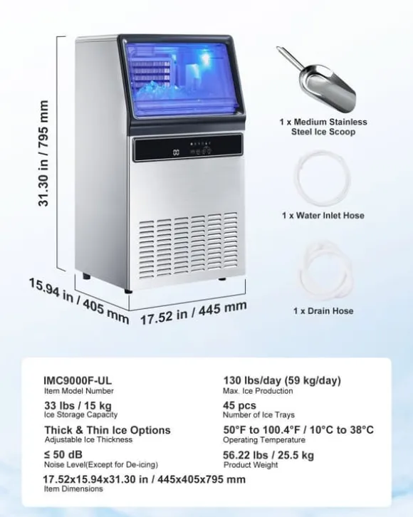 Kraftfull ismaskin för hem, bar och lätt kommersiellt bruk Denna underbänksvänliga ismaskin levererar upp till 59 kg kristallklara iskuber per dygn och 45 kuber per cykel. Med generös lagring, tyst drift och enkel styrning får du pålitlig isproduktion som passar både vardag och fest.