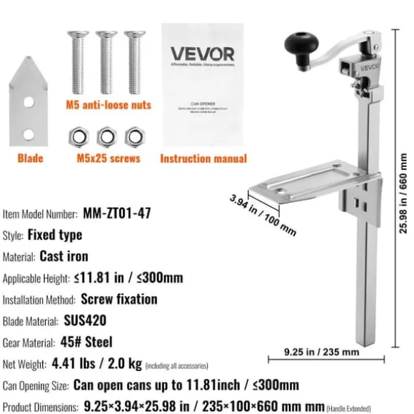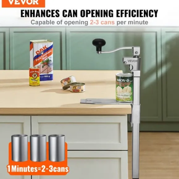 Effektiv manuell bordskonservöppnare för snabb och säker burköppning Denna kraftiga öppnare är designad för professionella kök och hög belastning. Den öppnar 2–3 burkar per minut, hanterar stora diametrar upp till 300 mm och ger jämn, ren skärning med hög precision. Robust konstruktion, ergonomiskt handtag och enkel rengöring gör den idealisk för daglig användning.
