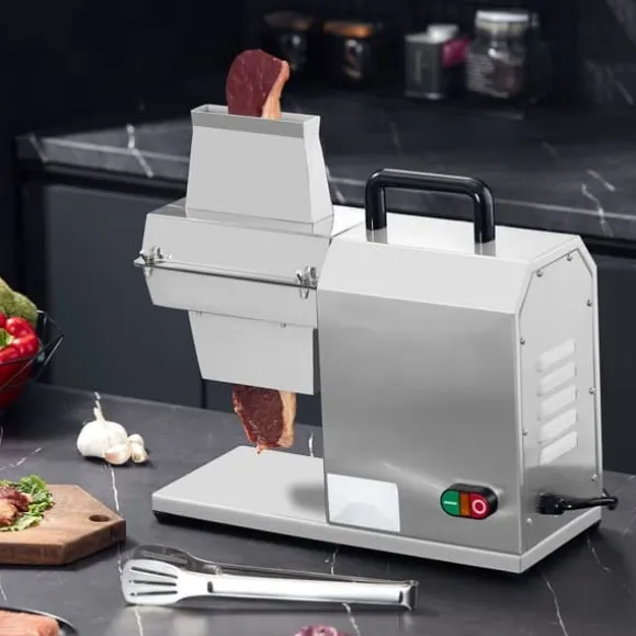 Oavsett om det handlar om lammkotletter, fläskfilé, kycklingbröst, nötkött, fiskfiléer eller anka, hanterar vår elektriska mörnare detta utan problem. Skärlängden kan variera från 6 till 130 mm, med en tjocklek på 3 till 22 mm. En-knapp-start, snabb mörning och förbättrad smak på produkten.