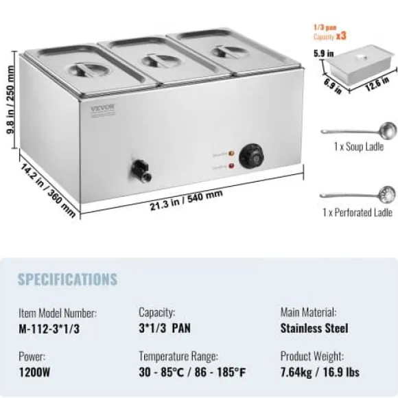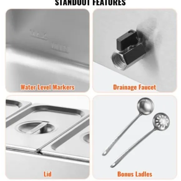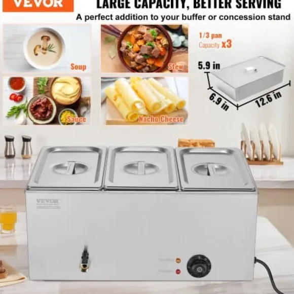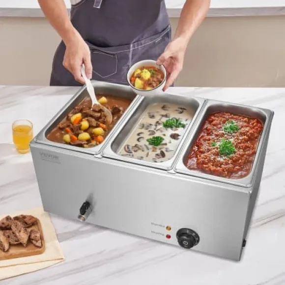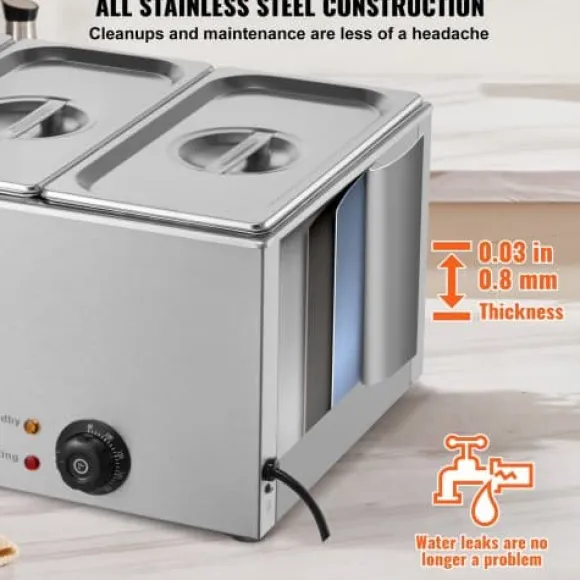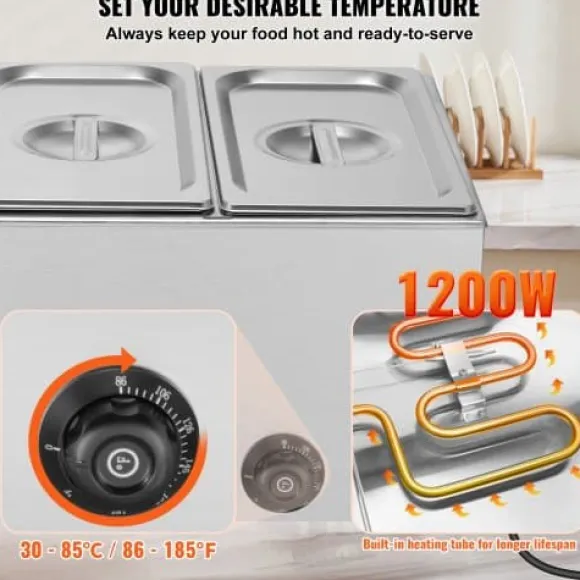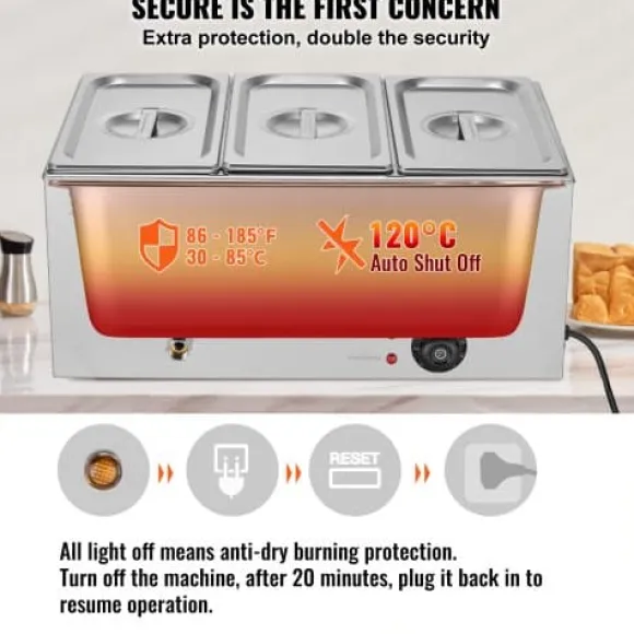 Denna professionella bänkmonterade matvarmhållare är utformad för catering och restaurangbruk, och håller effektivt flera rätter varma och serveringsklara. Den robusta konstruktionen i rostfritt stål säkerställer hållbarhet och enkel rengöring, medan den justerbara temperaturkontrollen och torrkokningsskyddet ger säker och pålitlig drift. Enheten inkluderar tre matbehållare och användarvänliga funktioner för smidig servering och rengöring.