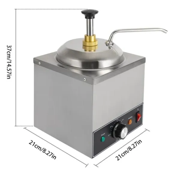 Sås- och toppingsvärmare med pump – 2L, 650W, rostfritt stålHåll chokladsås, ost, karamell eller sirap perfekt serveringsvarma. Denna bänkenhet i 201 rostfritt stål rymmer 2L, har exakt temperaturreglering 30–110℃ och EU‑kontakt – idealisk för kök, café och buffé.