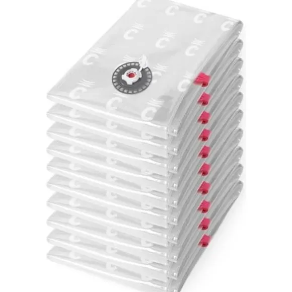 COMPACTOR 10-pack kompressionspåsar – Storlek M – Transparent – Nylon + Polyeten – Paketet kan rymma motsvarande 10 enpersonstäcken.