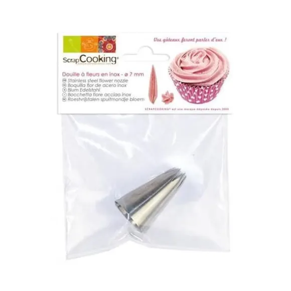 Den mest kända och helt klart den mest raffinerade spritsen, spritsen i rostfritt stål ’Blommor’ gör att du kan dekorera cupcakes och andra bakverk i form av blommor. Mått: Ø0,8 x H4,3 cm För att rengöra den räcker det med att skölja den i varmt vatten.
