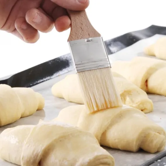 Producentens navn: HENDI 515327 Sæt med to flade konfekturebørster til spredning. Hendi-børster med mål på 40×210 mm vil fungere godt i professionelle lokaler og cateringvirksomheder, og overalt hvor det er vigtigt at påføre tynde lag væske på maden (f.eks. æggehvider til dej eller fedt på bageforme og pander). Egenskaber og funktioner: – håndtag af træ, – 2 stk i pakken, – mål: (40 x 210 mm), – tåler ikke opvaskemaskine. Sættet indeholder: – flad wienerbrødsbørste (2 stk).