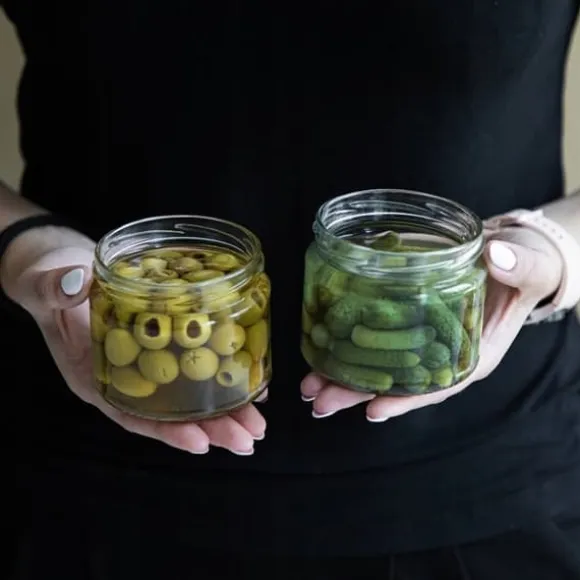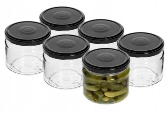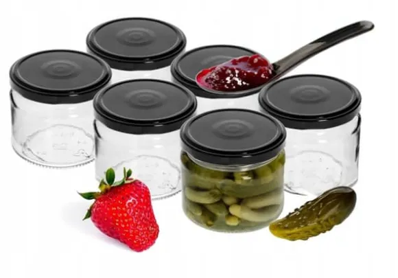 Glasburkar med en kapacitet på 330 ml , förpackade i lådor om 6 är tillverkade av tjockt, transparent glas. Burkar används för att förvara honung, pesto, såser, sylt, konserver och pickles.