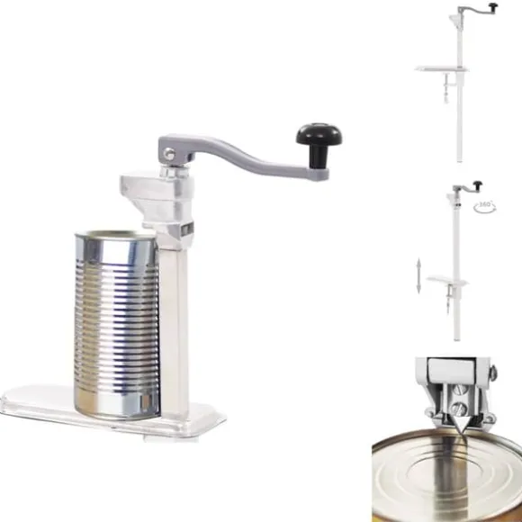 Eftersom den är tillverkad i aluminium och starkt rostfritt stål är konservöppnaren oerhört stadig och hållbar, vilket gör den lämplig för både privat och professionell användning i hotell, restauranger, skolor, event med mera. Med den medföljande monteringsklämman kan den enkelt fästas till ett bord eller en arbetsbänk och är lämplig för burkar med en höjd på upp till 55 cm. Dess 360 graders roterbara handtaget har hög flexibilitet för att möta olika behov.