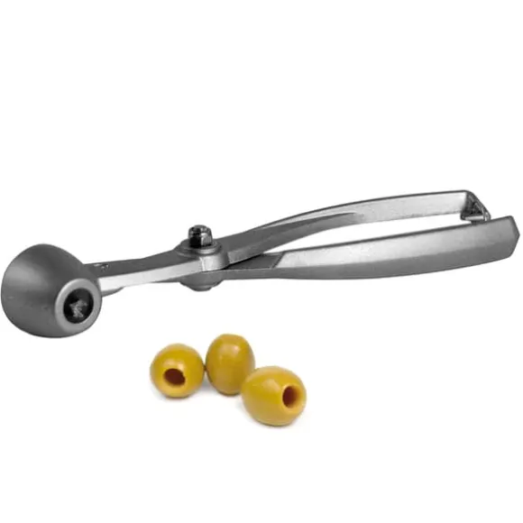 Oliv/Körsbärs tång trycker ur kärnan enkelt och snabbt. Aluminium.