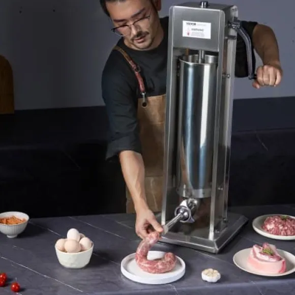 Denna manuella korvstoppare är utformad för både hemmabruk och kommersiellt bruk, och erbjuder effektiv korvtillverkning med stor kapacitet och exakt kontroll. Dess tvåväxlade drift och ergonomiska handtag säkerställer enkel och bekväm användning, medan konstruktionen i livsmedelsklassat rostfritt stål garanterar säkerhet och hållbarhet. Den avtagbara designen och de många tillbehören gör den mångsidig för tillverkning av korv, varmkorv och mer.